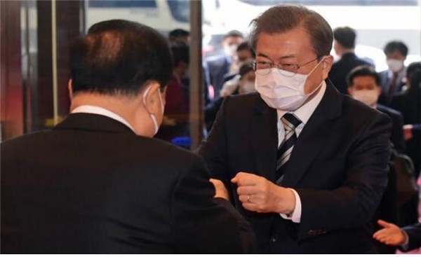 문재인 대통령은 "코로나19 때문에 정부나 국민들 모두 걱정이 많은데 아마 국회에서도 걱정들 많이 하실 것 같다"며 "코로나19 대해서 전 국가적인 총력 대응이 필요한 그런 시기인데 국회에서도 지속적으로 협력을 해 주셔서 감사드린다"고 말했다.