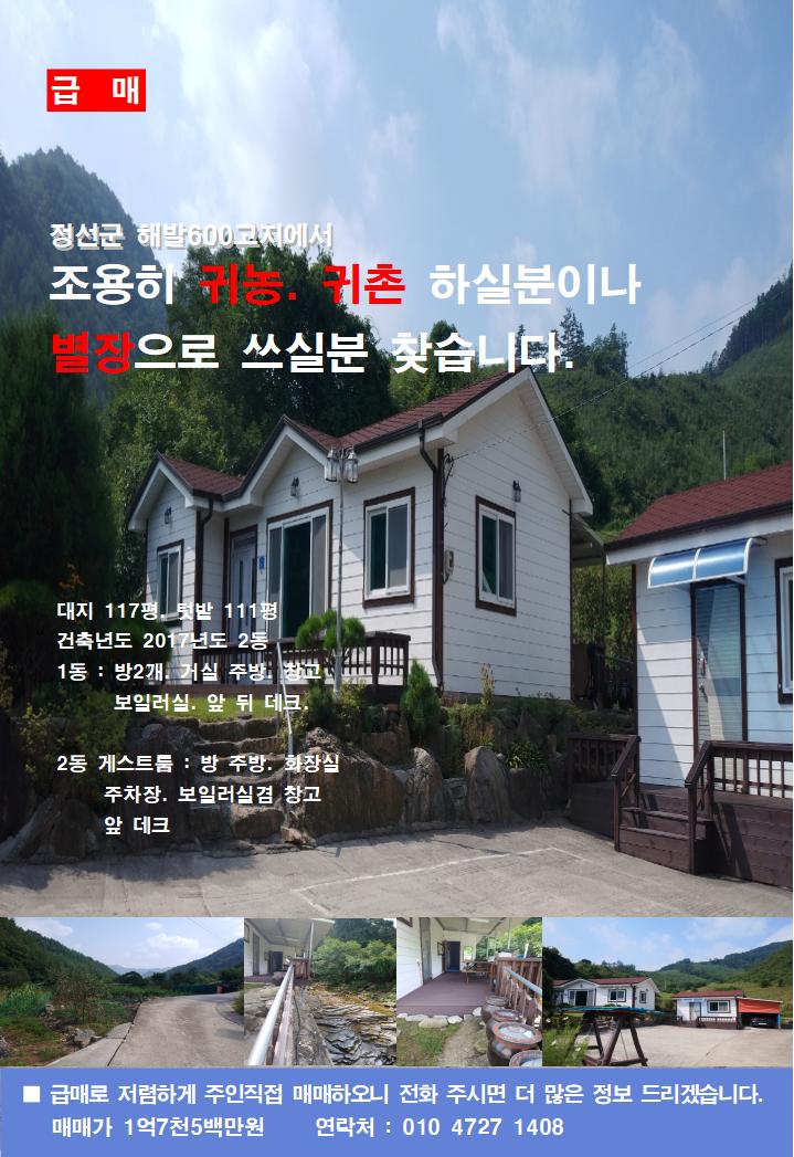 조용히 귀농 귀촌 하실분이나 별장으로 쓰실분 찾습니다.