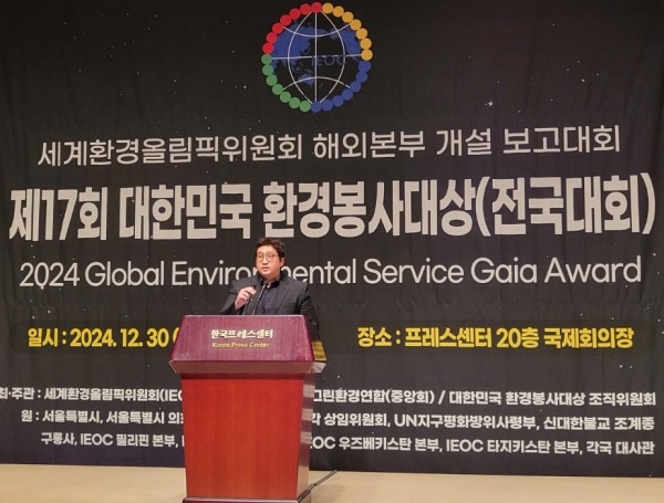 이런 열악한 상황에도 불구하고 오늘 이렇게 세계환경올림픽위원회 해외본부 보고대회 및 시상식을 갖게 돼 주최측 대표로써 참으로 자랑스럽게 생각합니다.