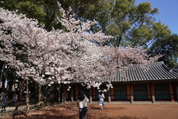 (내외매일뉴스/내외매일신문=문경숙 기자)  화창한 날씨를 보인 지난29일, 벚꽃 시즌을 맞은 제주 신화의 발상지 삼성혈은 벚꽃이 활짝 핀 한옥을 배경으로 한 인생 사진을 촬영하려는 상춘객으로 붐볐다.
