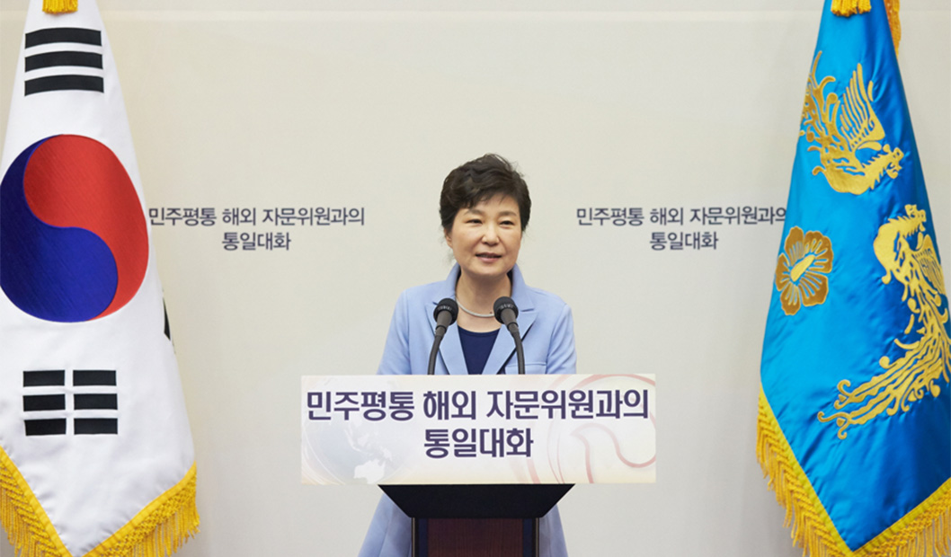 박 대통령은 이날 청와대에서 민주평화통일자문회의 해외자문위원들과 ‘통일대화’ 행사를 갖고 “북한체제가 비정상적인 방법에 의존하지 않고는 생존조차 어려운 상황에 이르렀다는 것을 잘 보여준다”며 이같이 밝혔다.