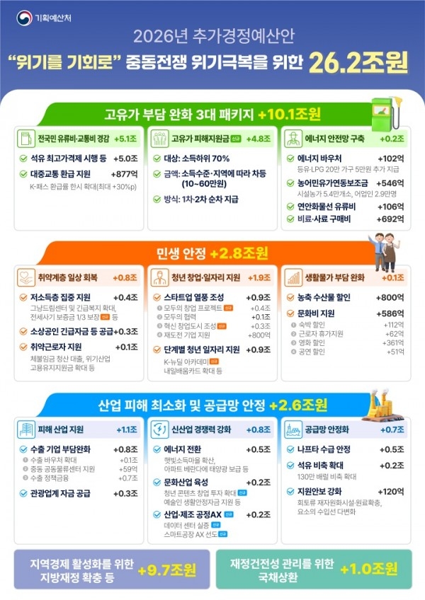 기획예산처, 중동전쟁 위기극복 26.2조 원 추경…피해지원금 최대 60만원 지원...