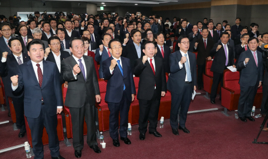 친박계 의원 62명은 이날 오전 국회에서 출범식을 갖고 3인의 공동대표를 선출하는 등 본격적인 활동을 시작했다.