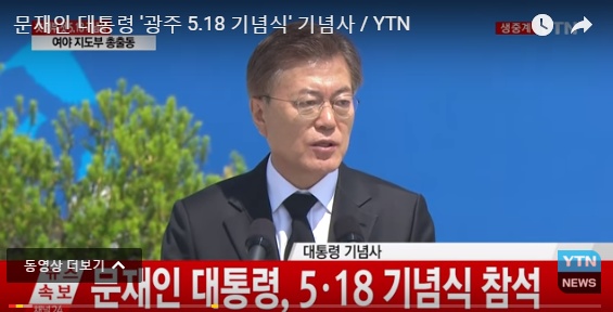 문 대통령은 “5·18 정신을 헌법전문에 담겠다는 저의 공약도 지키겠다. 광주정신을 헌법으로 계승하는 진정한 민주공화국 시대를 열겠다”며 “5·18정신을 헌법 전문에 담아 개헌을 완료할 수 있도록 이 자리를 빌어서 국회의 협력과 국민여러분의 동의를 정중히 요청 드린다”고 밝혔다.