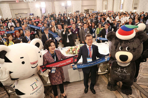 유엔 총회 참석차 미국을 방문 중인 문 대통령은 이날 오후 뉴욕 메트로폴리탄 박물관에서 '평화올림픽을 위한 메트로폴리탄 평창의 밤' 행사에 참석해 평창올림픽의 성공 개최를 확신하고 참석자들의 방문을 촉구하며 이같이 밝혔다.