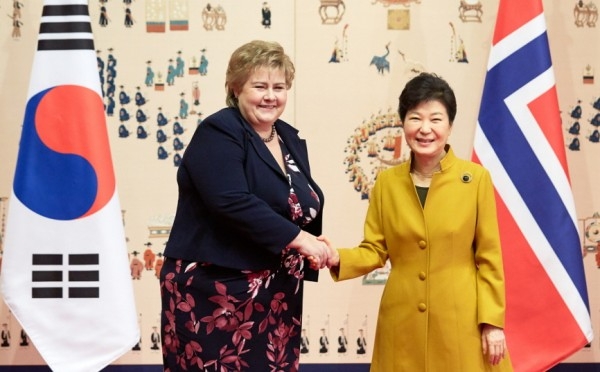 박근혜 대통령은 15일 청와대에서 에르나 솔베르그 노르웨이 총리와 정상회담을 하고 조선·해양 플랜트 등 분야에서 양국 협력을 강화하기로 했다.