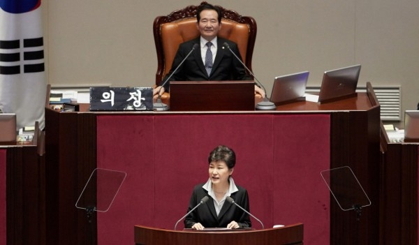 박근혜 대통령이 24일 오전 국회에서 2017년도 예산안 시정연설을 하고 있다.(사진/청와대)