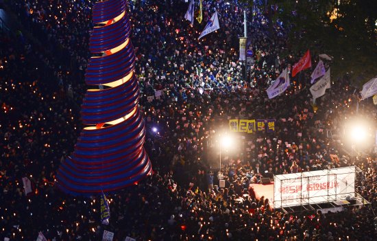 ("모이자 분노하자 내려와라 박근혜' 촛불집회에서 시민들의 촛불이 29일 서울 청계광장을 가득 메우고 있다. 이른바 '최순실 국정논란' 파문이 터져나온 후 첫 주말인 29일 서울 도심에서 대규모 집회가 열렸다)