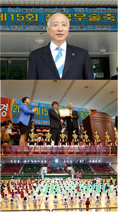 <사진설명 : 상에서 하로> 상 : 세계무술그룹 엄상섭 총재, 중 : 엄광호 이사장 수상, 하 : 2016년 전국 무술축제 개막식
